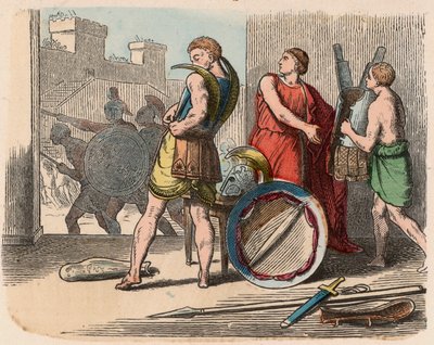 (Ancient History. Greece. Greek warriors arming themselves for war. ... (engraving))German School |