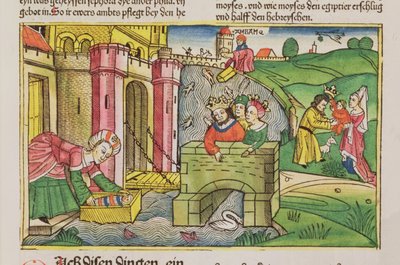 (Rescue of Moses, scene in the Bible of Nuremberg written in German, ...)German School |