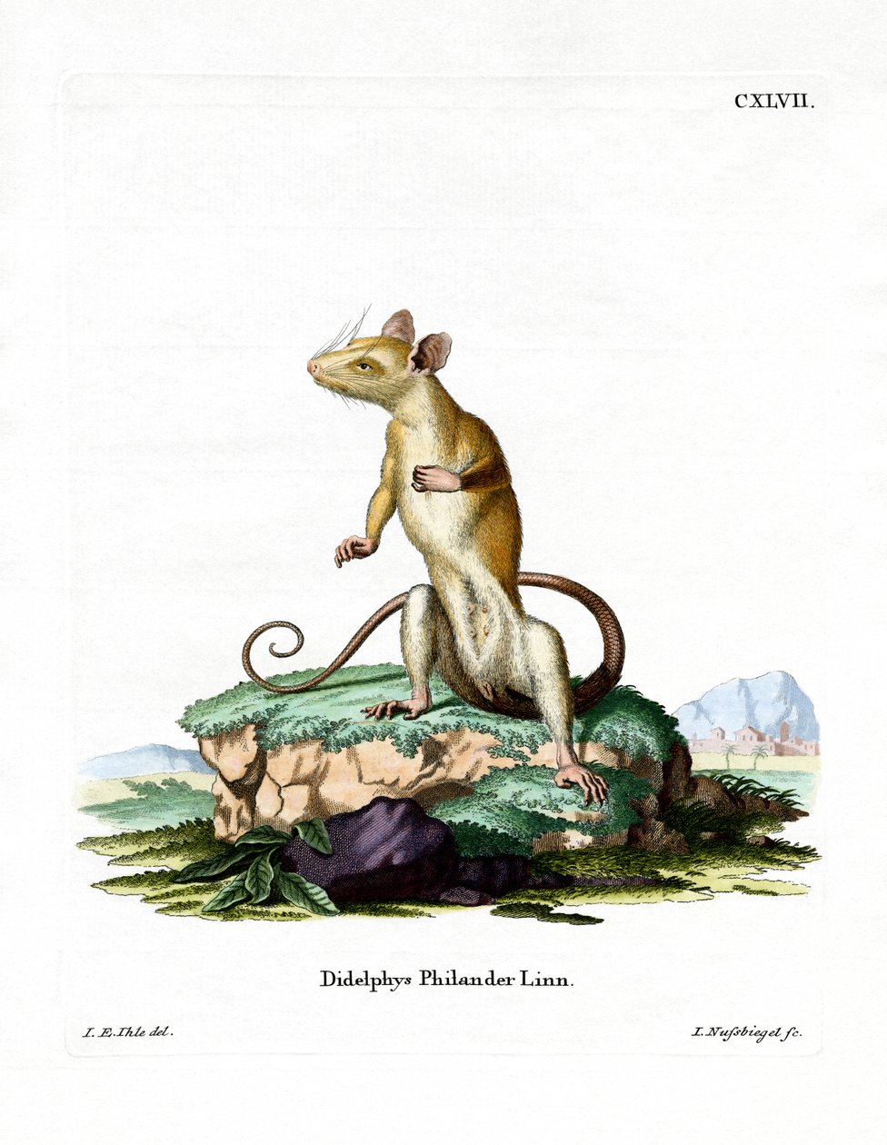 Opossum lanoso dalla coda nuda(Bare-tailed Woolly Opossum (coloured engraving))German School |