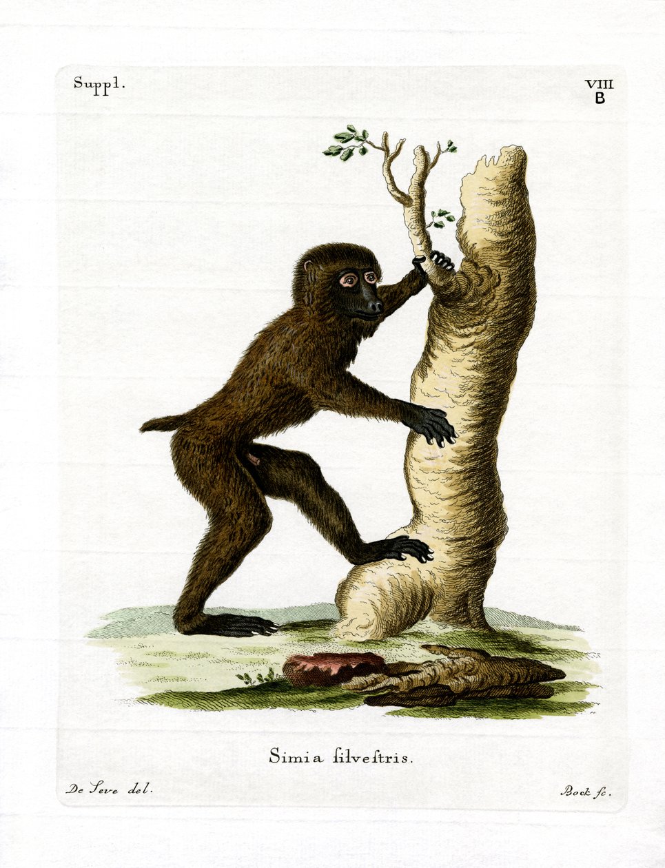 Babbuino del legno(Wood Baboon (coloured engraving))German School |
