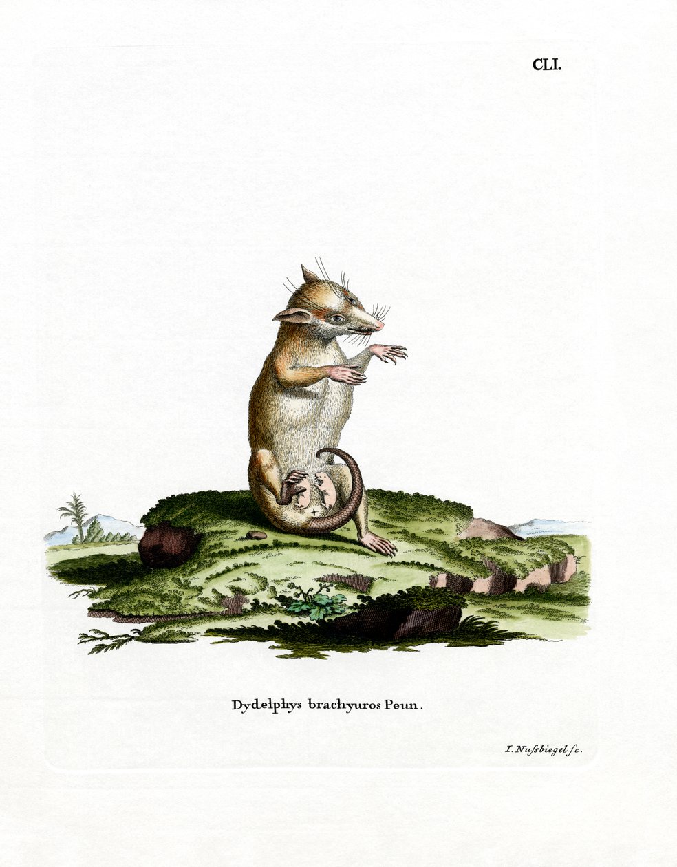 Opossum dalla coda corta(Short-tailed Opossum (coloured engraving))German School |