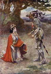 Il cavaliere della Croce Rossa era completamente sopraffatto(The Red Cross Knight was completely overcome (colour litho))Gertrude E. Demain (after) Hammond |