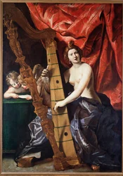 Donna che suona l'arpa (Allegoria della Musica)(Woman music playing the harp (Allegory of Music). (Painting)Giovanni Lanfranco |