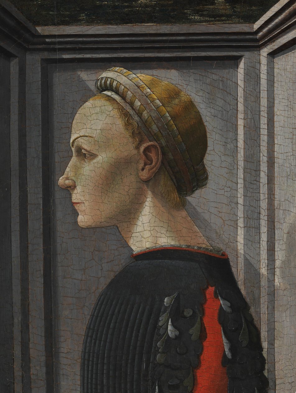 portrait · vista laterale · italiano · femminile · donne · donna · la gente · nero · moda · pittura · paese · serio · museo · profilo · morte · vestito · capelli · posizione · secolo · fiera · bionda · concetto · funerale · funerary · colore · venuto a contatto di · museo metropolitano d'arte · il museo metropolitano di arte · portrait · tempera on wood · black colour · heritage art · tempera on wood · Heritage Art/Heritage Images |