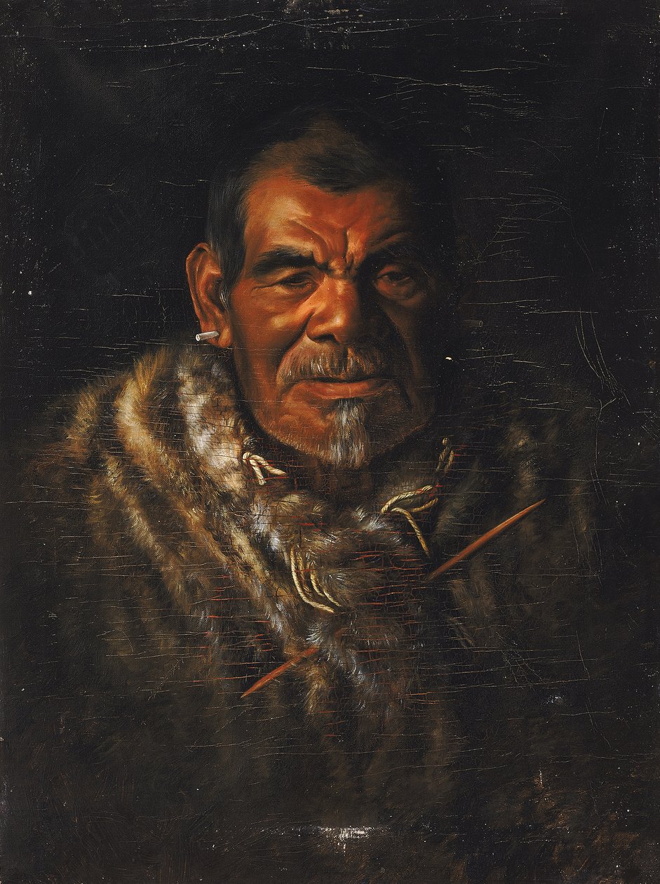 la gente · maschio · uomo · uomini · istruzione · pittura · paese · locale · uomo · pelo · abiti · colore · vestito · nativo · nativo americano · posizione · secolo · cappotto · abbigliamento · guardando macchina fotografica · una persona · indoamericano · pelliccia · pittura di olio · gli stati uniti di ameri · colore · istituzione smithsonian · diciannovesimo secolo · istituto scolastico · diciannovesimo secolo · americano · gli s.u.a. · john · direct gaze · portrait · captain · oil on canvas · heritage art · grace carpenter hudson · hudson · grace carpenter · captain john · ab-ba-ba-pomo · Heritage Art/Heritage Images |