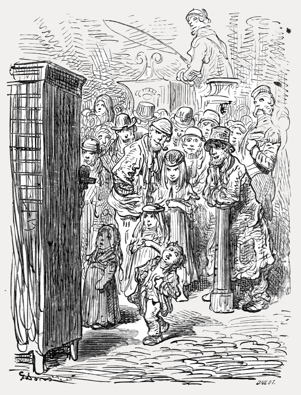 trasporto · trasporto · dore · paul gustave · dore · gustave · william blanchard jerrold · london a pilgrimage · grant co · grant and co · dorÚ · paul gustave · esterno · urbano · londra · femminile · donne · la gente · infanzia · maschio · ragazzo · ragazzi · bambino · bambini · ragazza · ragazze · folla · guardare · occupato · uomo · uomini · arti · paese · spettacolo · pubblico · libro · uomo · teatro · guardare · britannico · inglese · prestazioni · carrozza · esecutore · effettuazione · posizione · gita · victorian · secolo · gran bretagna · conducente · letteratura · concetto · il regno unito · punzone e judy · scena della via · esposizione del puppet · punzone judy · codice categoria di funzionamento · trasporto di strada · giorno · diciannovesimo secolo · nero bianco · nero e bianco · classe operaia · diciannovesimo secolo · storico · engraving · portrait · blanchard jerrold · jerrold · gustave dorÚ · gustave dore · louis christophe gustave dore · paul gustave dore · blanchard · The Print Collector/Heritage Images