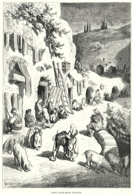 Grotte gitane, Sacro Monte, Granada, Spagna, da 'Immagini spagnole' del reverendo Samuel Manning, pubblicato nel 1870(Gypsy Caves, Sacro Monte, Granada, Spain, from 'Spanish Pictures' by the Reverend Samuel Manning, published in 1870 )Gustave Dore |