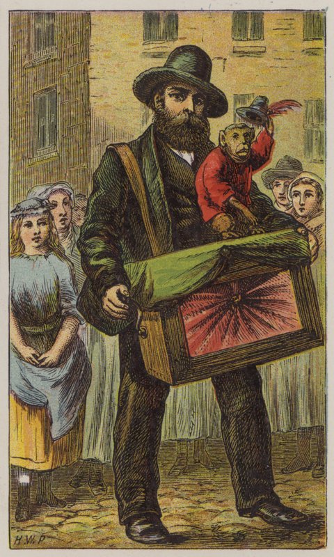 Suonatore di organetto(Organ Grinder (colour litho))H.W. (after) Petherick |