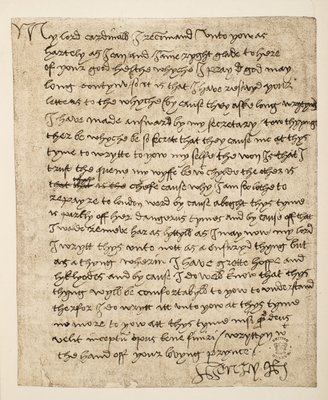 Facsimile di una lettera di Enrico VIII al cardinale Wolsey datata luglio 1518(Facsimile of a letter from Henry VIII to Cardinal Wolsey dated July 1518, pub. 1902 (collotype))Henry VIII |