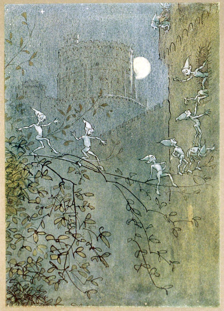 Cerca il castello di Windsor, elfi, dentro e fuori, da Le allegre comari di Windsor, pub. 1910(Search Windsor Castle, elves, within and out, from The Merry Wives of Windsor, pub. 1910 )Hugh Thomson |