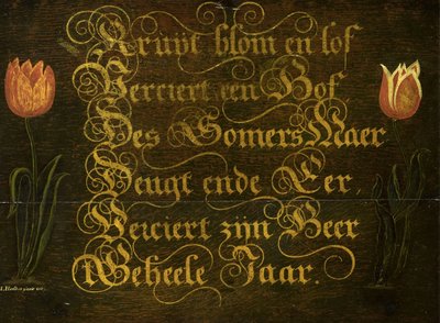Massima calligrafica, fiancheggiata da tulipani(A Calligraphic Maxim, Flanked by Tulips)Isaac Hondius(painter) |