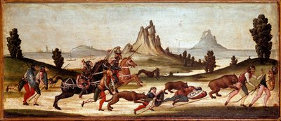 Caccia all'orso (olio su legno)(Bear Hunting (oil on wood))Italian School |