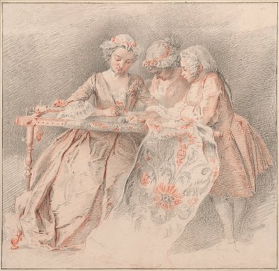 francia · cucito · cucito · ricamo · arti grafiche · nobility · rococo · aristocracy · embroideress · genre · embroiderer · fancy work · black chalk and sanguine on paper · portail · jacques-andré 1695-1759 · louis xv · Fine Art Images/Heritage Images