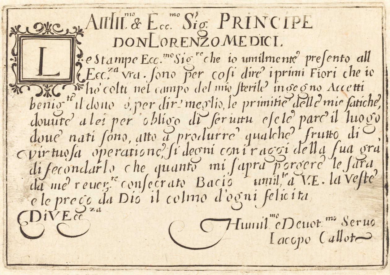 Dedica a Don Lorenzo de' Medici(Dedication to Don Lorenzo de' Medici)Jacques Callot |