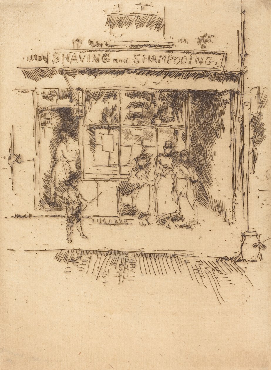 esterno · costruzione · la gente · bambino · bambini · gruppo · attesa · shopping · negozio · negozi · arti · entrata · paese · segno · arte · britannico · washington · capelli · entrata · parte anteriore del negozio · posizione · secolo · galleria · gran bretagna · stampa · concetto · rasatura · parrucchiere · parrucchieri · sciampo · galleria d'arte · lavoro di parrucchiere · gli stati uniti di ameri · diciannovesimo secolo · nero bianco · nero e bianco · galleria nazionale di arte · gente locale · diciannovesimo secolo · americano · gli s.u.a. · etching · portrait · james · james abbott mcneill whistler · james mcneill whistler · j.a mcneill whistler · ja mcneill whistler · whistler · james abbott mcneill · whistler · james mcneill · james mcneil whistler · art centre · gilded age · heritage art · print · whistler · james a. mcneill · james a mcneill whistler · whistler · james a mcneill · rosenwald collection · Heritage Art/Heritage Images