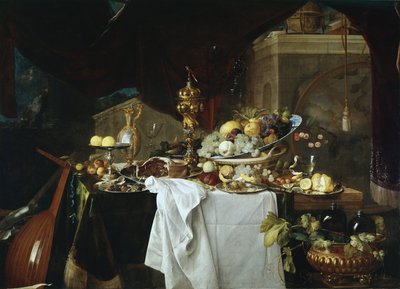 Natura morta con tavola da dessert coperta di piatti con strumenti musicali(A still life table dessert covered with dishes with musical instrument. Painting by Jan David Heem (1606-1684) 1640 Sun. 1,49x2,03 m)Jan Davidsz de Heem |