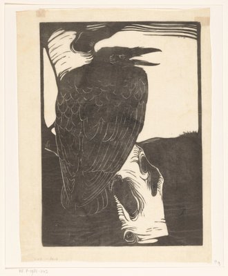 Corvo su un albero di betulla(Raaf op berkenboom)Jan Mankes(print maker) |