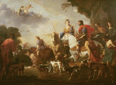 Enea e la regina Didone a caccia (dipinto su tela)(Aeneas and Queen Dido hunting (painting on canvas))Jan van Bike Miel |