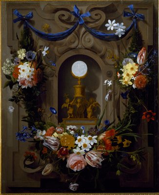 (The Eucharist surrounded by flowers (oil on canvas))Johannes Antonius van der Baren |