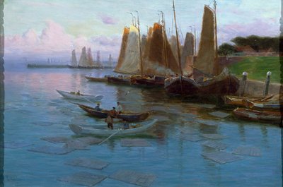 (Fishing boats in harbour (painting))Johannes Martin Grimelund |