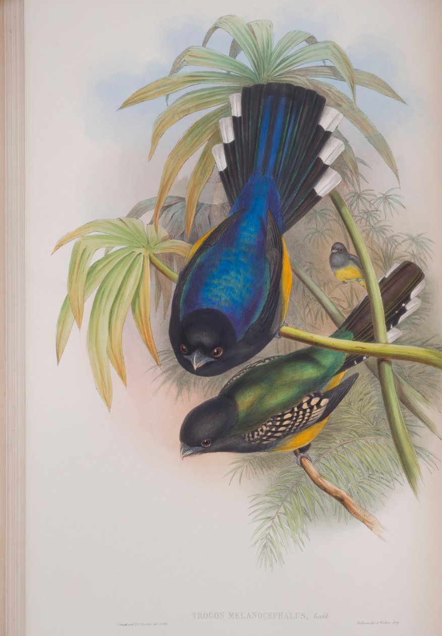 Trogone dalla testa nera, tavola da The Birds of Great Britain di John Gould, pubblicato 1862-73(Trogon Melanocephalus, plate from The Birds of Great Britain by John Gould, published 1862-73 (hand-coloured litho))John Gould |