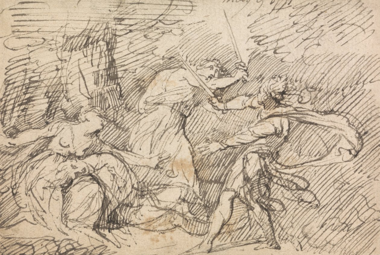 Due uomini che combattono davanti a una donna(Two Men Fighting Before a Woman)John Hamilton Mortimer |