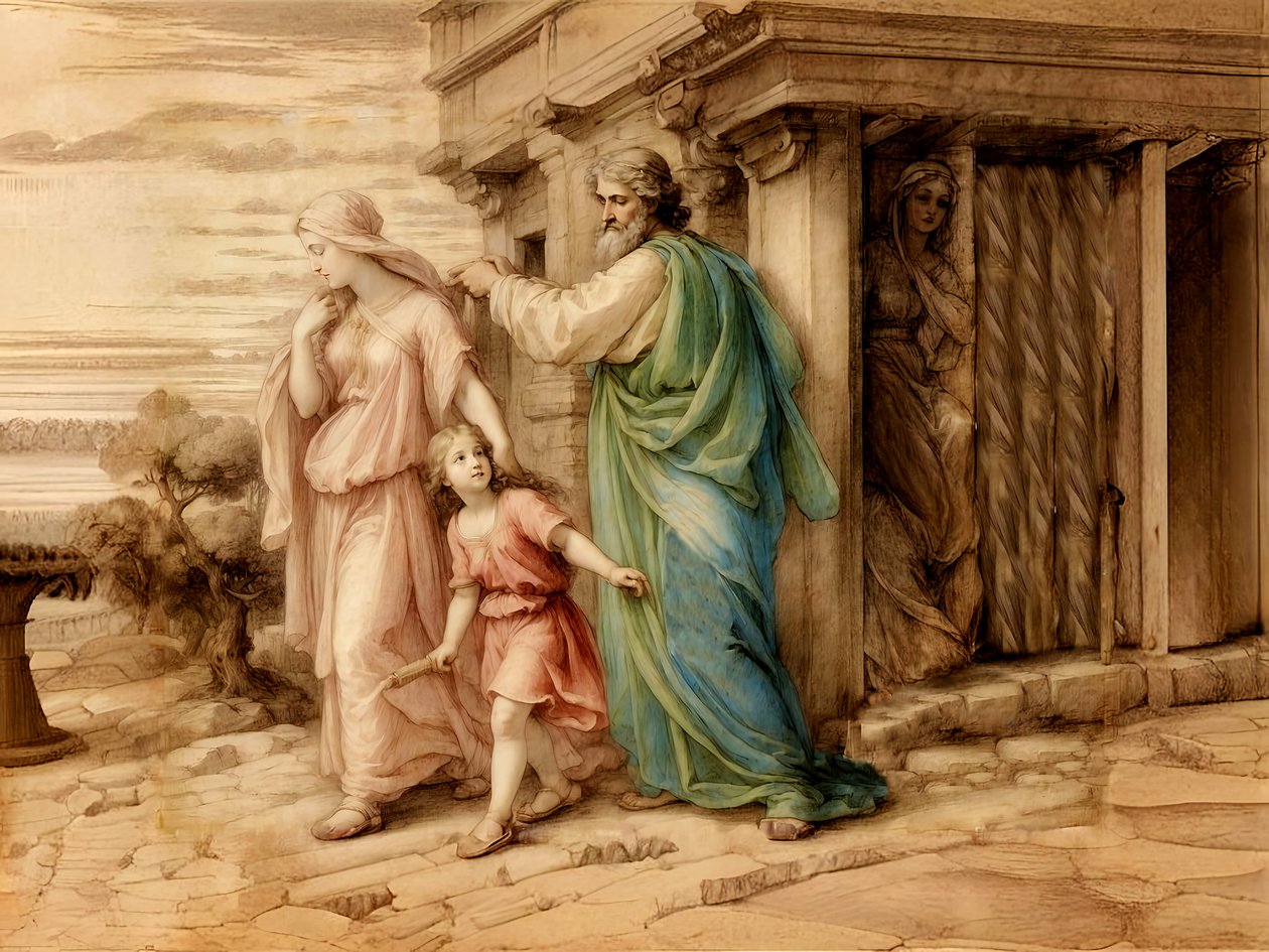 Agar e suo figlio Ismaele vengono rifiutati da Abramo e devono vivere nel deserto. Dio promette di fare di Ismaele il padre di una grande nazione.