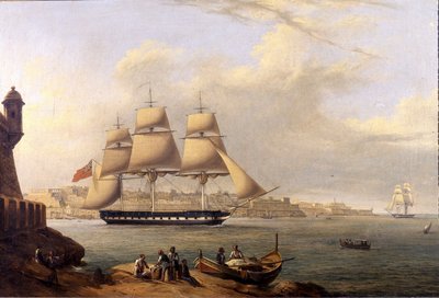 (A frigate passing Fort St Elmo as she makes her way out of the Grand Harbour, Valetta, Malta (oil on canvas))Joseph Cartwright |