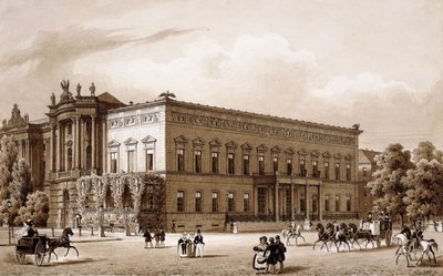 Unter den Linden, Berlino. Il palazzo del principe Wilhelm, costruito da Karl Langhans nel 1834-36, e la Biblioteca Reale, costruita da Georg Christian Unger 1775-78 secondo i piani di Josef Emanuel Fischer von Erlach, che si affaccia sulla Platz am Opernh(Unter den Linden, Berlin. the Palace of Prince Wilhelm, built by Karl Langhans in 1834-36, and the Künigliche Bibliothek, built by Georg Christian Unger 1775-78 according to plans by Josef Emanuel Fischer von Erlach, overlooking the Platz am Opernhaus, )Karl Loeillot-Hartwig |