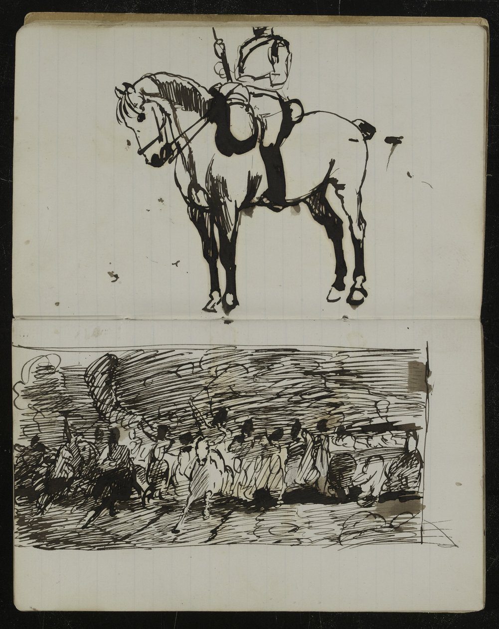 Studio della Battaglia di Waterloo, schizzo preliminare per il dipinto a olio 'Scotland for Ever!'(Study of the Battle of Waterloo, a preliminary sketch for the oil painting 'Scotland for Ever!', c.1880 )Lady Butler |