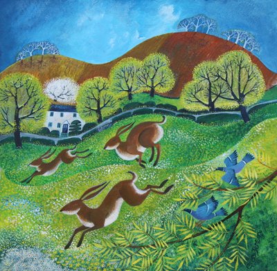 Lepri di primavera 2, 2025 (acrilici su tela)(Spring Hares 2, 2025 (acrylics on canvas))Lisa Graa Jensen |