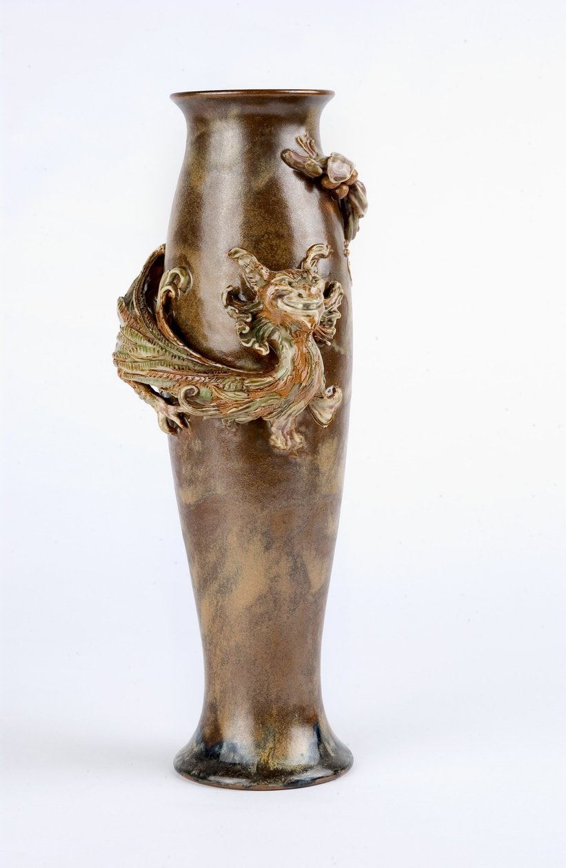 Vaso smaltato verde e marrone con rilievo di drago, Doulton e Co., Lambeth(Green and Brown glazed vase with a moulded dragon relief, Doulton und Co., Lambeth, c.1905 (stoneware))Mark V. Marshall |