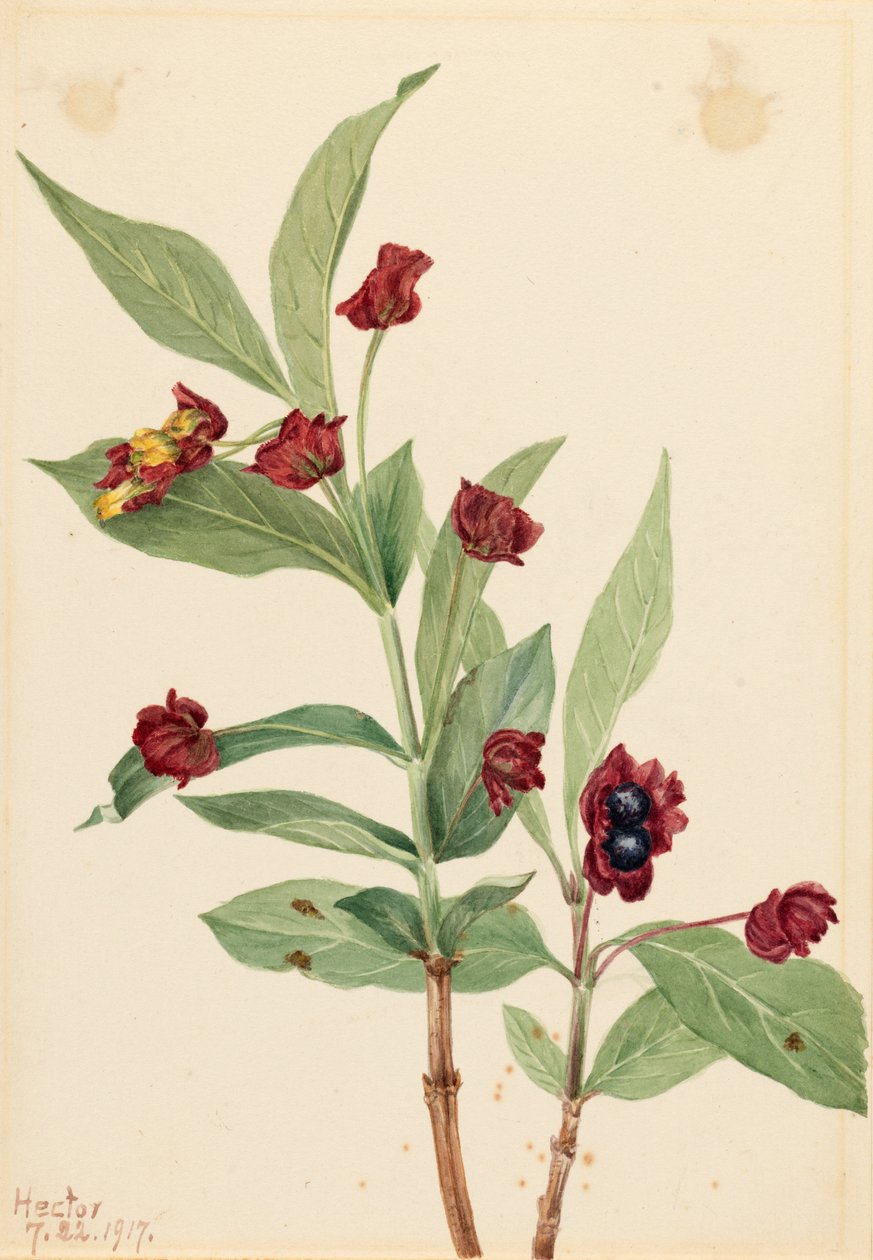 Caprifoglio a bacche (Lonicera involucrata)(Bearberry Honeysuckle (Lonicera involucrata))Mary Vaux Walcott |