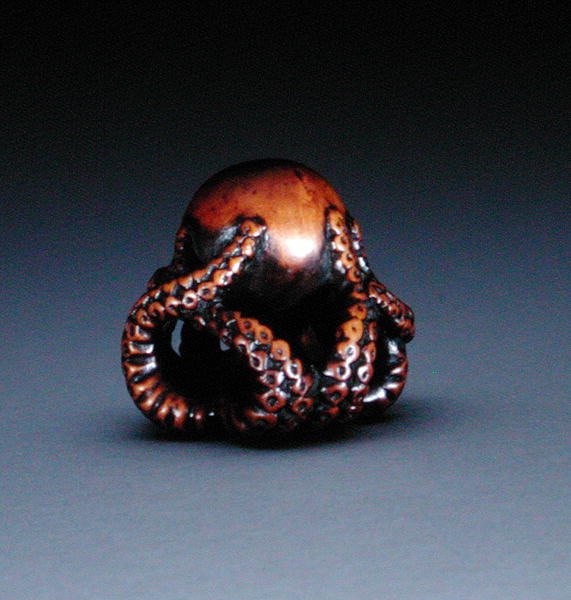 Netsuke raffigurante un polpo, c.1760-70(Netsuke depicting an octopus, c.1760-70 (wood & inlaid horn) (for obverse see 193821))Masanao |
