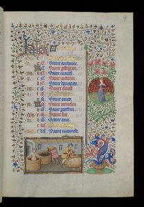 Rappresentazione di Adamo che raccoglie la terra ed Eva che fila la lana dopo essere stati cacciati dal Paradiso terrestre. Miniatura tratta da “Des cas des nobles hommes et femmes infortunes” (De casibus) di Giovanni Boccaccio detto Jean Boccace (1313-137(Representation of Adam picking the earth and Eve spinning the wool after being hunted from the earthly Paradise. Miniature taken from “” Des cas des nobles hommes et femmes infortunes”” (De casibus) by Giovanni Boccaccio dit Jean Boccace (1313-1375), Itali)Master Dunois |