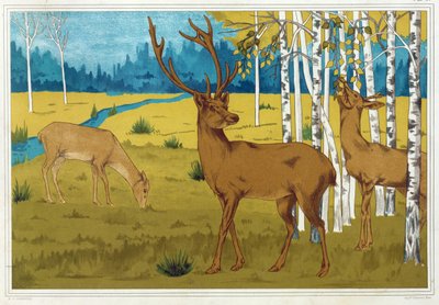 pascolo · corna · cervo · maschio · stile liberty · cerfs · uova · historica graphica collection · colour lithograph · illustration · animals in decoration · l'animal dans la decoration · maurice pillard verneuil · maurice pillard verneuil 1869?1942 · Historica Graphica Collection/Heritage Images