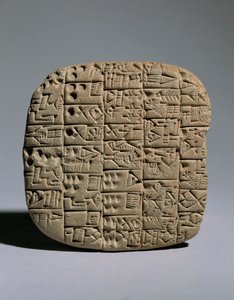 Tavoletta con scrittura cuneiforme che dettaglia un contratto per la vendita di un campo e una casa, da Shuruppak, c.2600 a.C.(Tablet with cuneiform script detailing a contract for selling a field and a house, from Shuruppak, c.2600 BC )Mesopotamian |