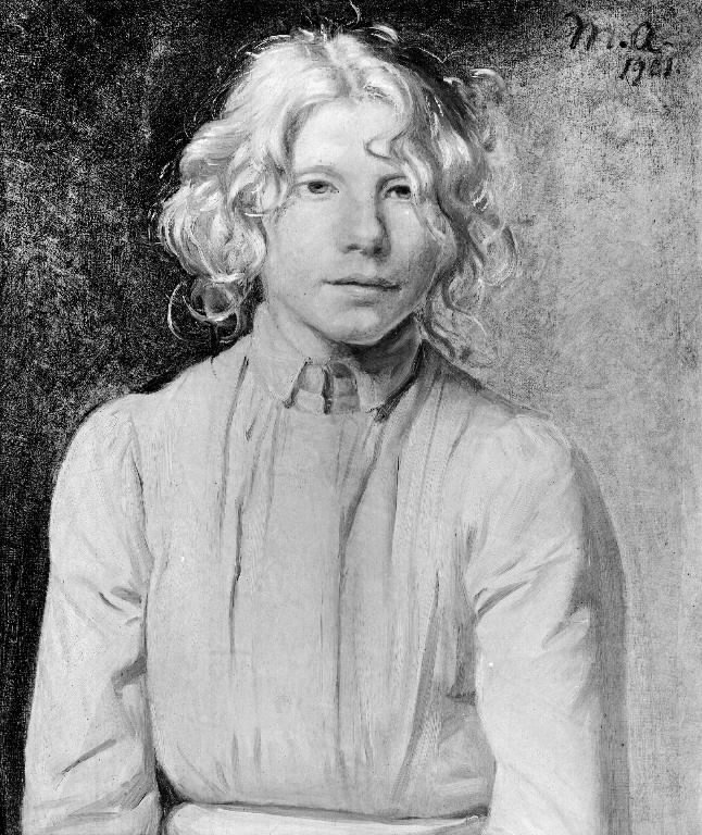 Una ragazza di Skagen in un vestito rosso(A Skagen Girl in a Red Dress )Michael Peter Ancher |