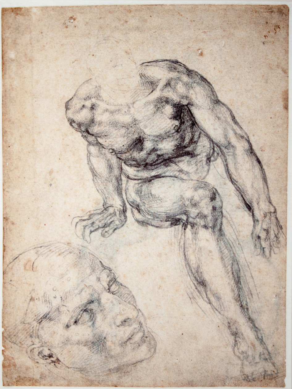 Studio di un nudo maschile, studio separato della sua testa(Study of a male Nude, separate Study of his Head)Michelangelo Buonarroti |
