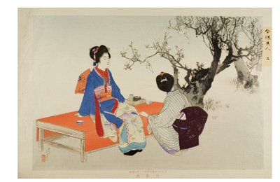 Guardando i fiori di prugno. Dalla serie Bellezze moderne, 1897-1899 circa (stampa xilografica su carta)(Looking at Plum Blossoms. From the series Modern Beauties, c.1897-1899 (woodblock print on paper))Mizuno Toshikata |