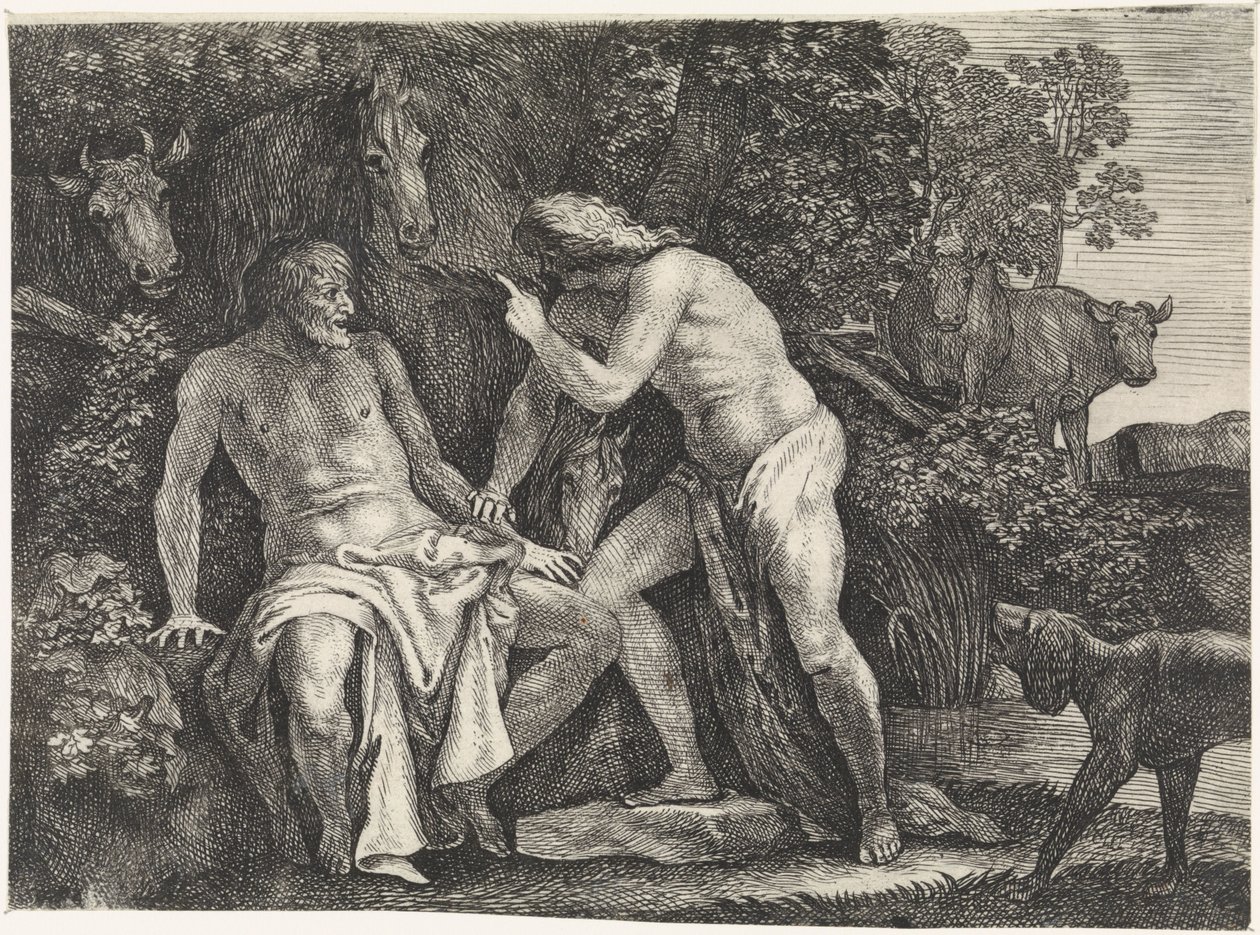 Mercurio accusa Battus(Mercurius beschuldigt Battus)Moyses van Wtenbrouck(print maker) |