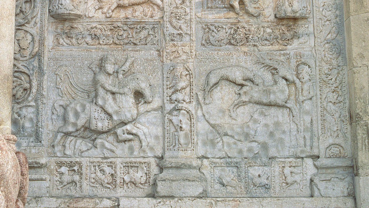 Pannelli in rilievo di soggetti dal Libro della Genesi, Romanico, c.1120-38 (dettaglio)(Relief panels of subjects from the Book of Genesis, Romanesque, c.1120-38 stone detail of 102490)Nicholaus |