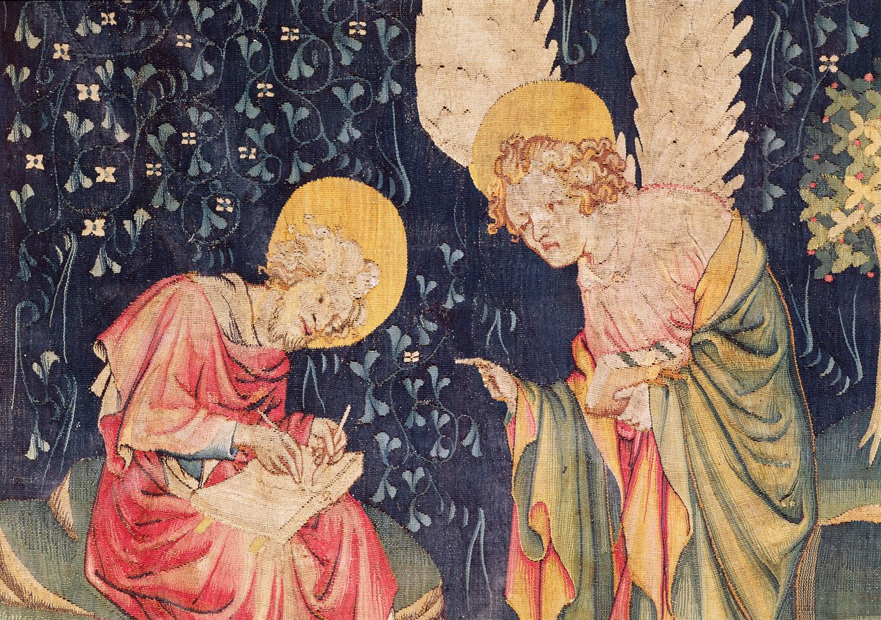 San Giovanni con un angelo, dettaglio n.70 da L'Apocalisse di Angers(St. John with an Angel, detail of no.70 from The Apocalypse of Angers, 1373-87 tapestry)Nicolas Bataille |