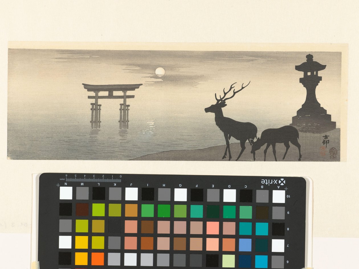 Paesaggio con torii e cervi(Landschap met torii en herten)Ohara Koson(print maker),Akiyama Buemon(publisher) |
