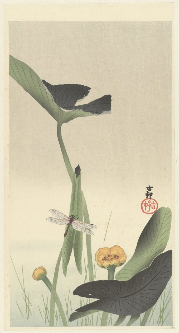 Libellula e fiore di loto(Dragonfly and lotus flower, c.1900-30 (colour woodcut))Ohara Koson |
