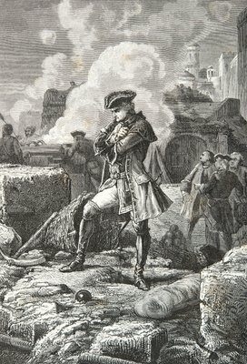 Thomas Arthur Lally, Barone di Tollendal durante l'assedio di Pondichery nel 1760 - Incisione di Paul Philipotteaux (1846-1923)(Thomas Arthur Lally, Baron de Tollendal During the siege of Pondichery in 1760 - Engraving by Paul Philipotteaux (1846-1923) - Thomas Arthur, Baron de Tollendal, count de Lally (1702-1766), French officer Lally-Tolendal on the ramparts of Pondicherry)Paul Dominique Philippoteaux |