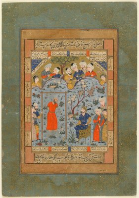 Giovane principe e un derviscio, illustrazione da 'Majalis al-'Ushshaq di Sultan Husayn Mirza'(Young prince and a dervish, illustration from 'Majalis al-'Ushshaq of Sultan Husayn Mirza')Persian School |