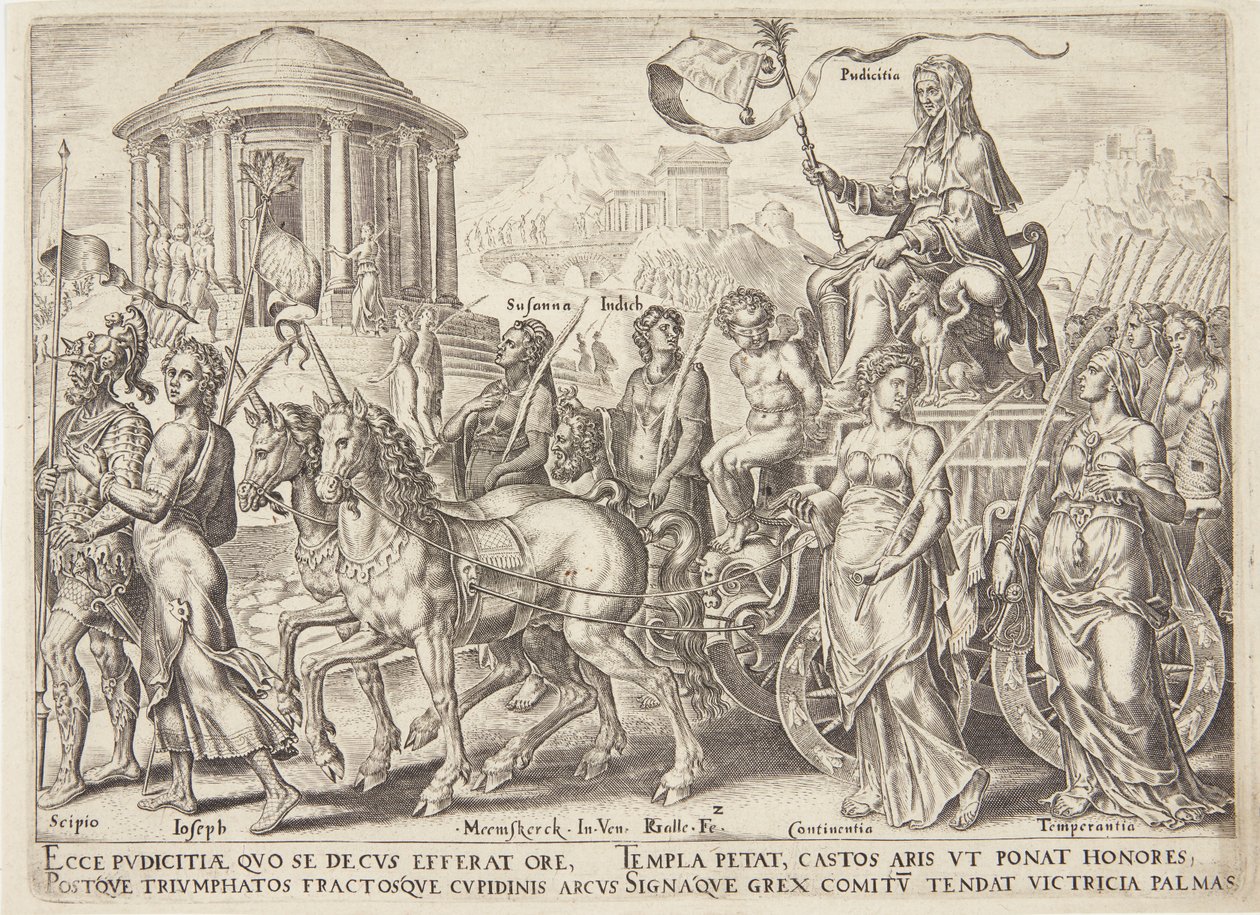 Il trionfo della castità(The triumph of chastity)Philips Galle,Maarten van Heemskerck(after model by),Philips Galle(publisher) |