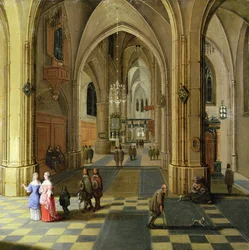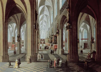 Interno di chiesa (Veduta del coro di St. Eustache, Parigi) (olio su tavola)(Church interior (View into the choir of St. Eustache, Paris) (oil on wood))Pieter the Younger Neeffs |