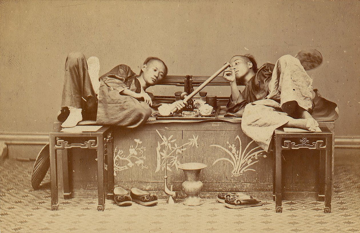 [Fumatori di Oppio], anni 1870([Opium Smokers], 1870s. )Pun Lun |